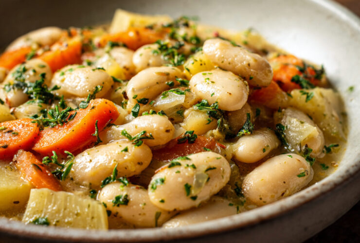 Dušená bílá fazole s kořenovou zeleninou Hodnocení: 4,8 / 5 Podrobný popis Dušená bílá fazole s kořenovou zeleninou je poctivý, výživný a uklidňující pokrm, který staví na jednoduchých surovinách a pomalé tepelné úpravě. Na první pohled zaujme světlou, krémovou barvou ...