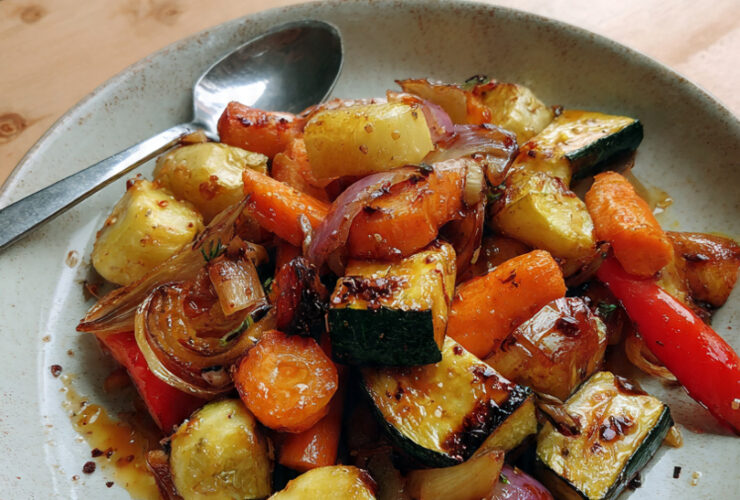 Pečená zeleninová směs s medovou glazurou Hodnocení: 4,8 / 5 Pečená zeleninová směs s medovou glazurou je moderní, barevně atraktivní a chuťově výrazný pokrm, který spojuje přirozenou sladkost zeleniny s jemně karamelizovaným povrchem. Na první pohled zaujme kombinací různých druhů ...