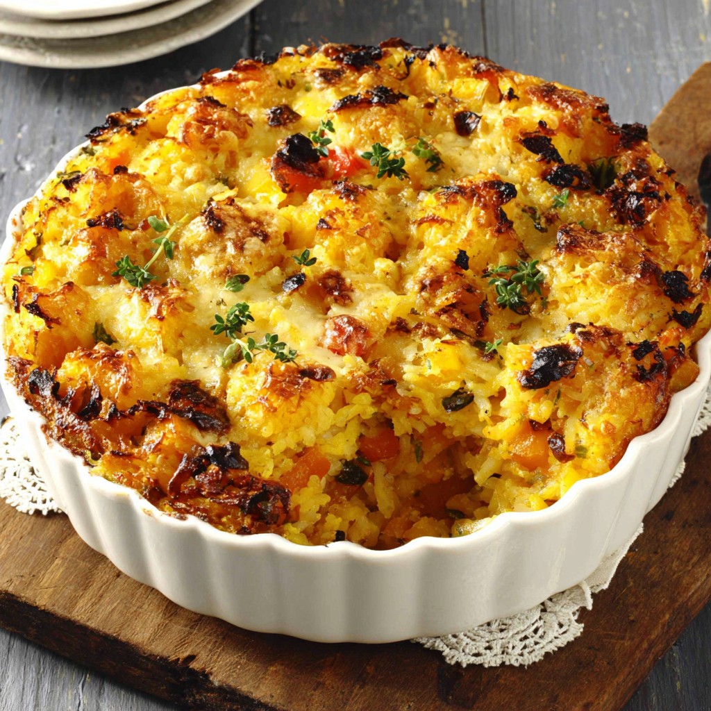 Zapečená rýže s dýní a sýrem je dokonalý pokrm pro chladné dny – výživný, hřejivý a lahodný. Spojuje podzimní suroviny do harmonického celku a nabízí nejen krásnou barvu, ale i jedinečnou chuťovou hloubku. Tento recept si zamilují všichni, kdo dávají přednost domácímu, poctivému jídlu s duší.