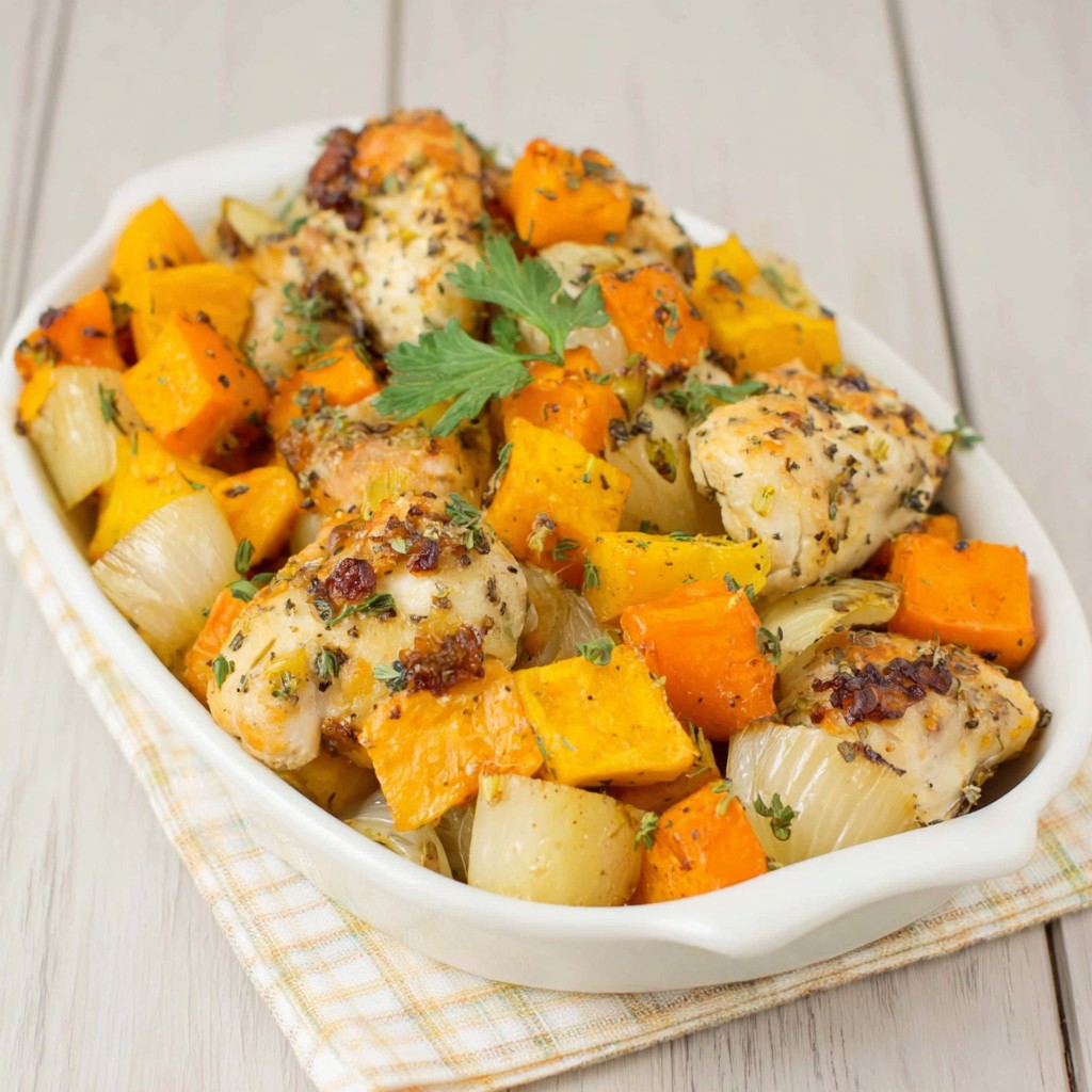 Tento recept působí dojmem venkovského oběda – barevný, voňavý a plný přírodních chutí. V troubě se všechny ingredience spojí do harmonického celku: maso zůstane šťavnaté, batáty změknou do krémové struktury a cibule získá lehce karamelovou příchuť.