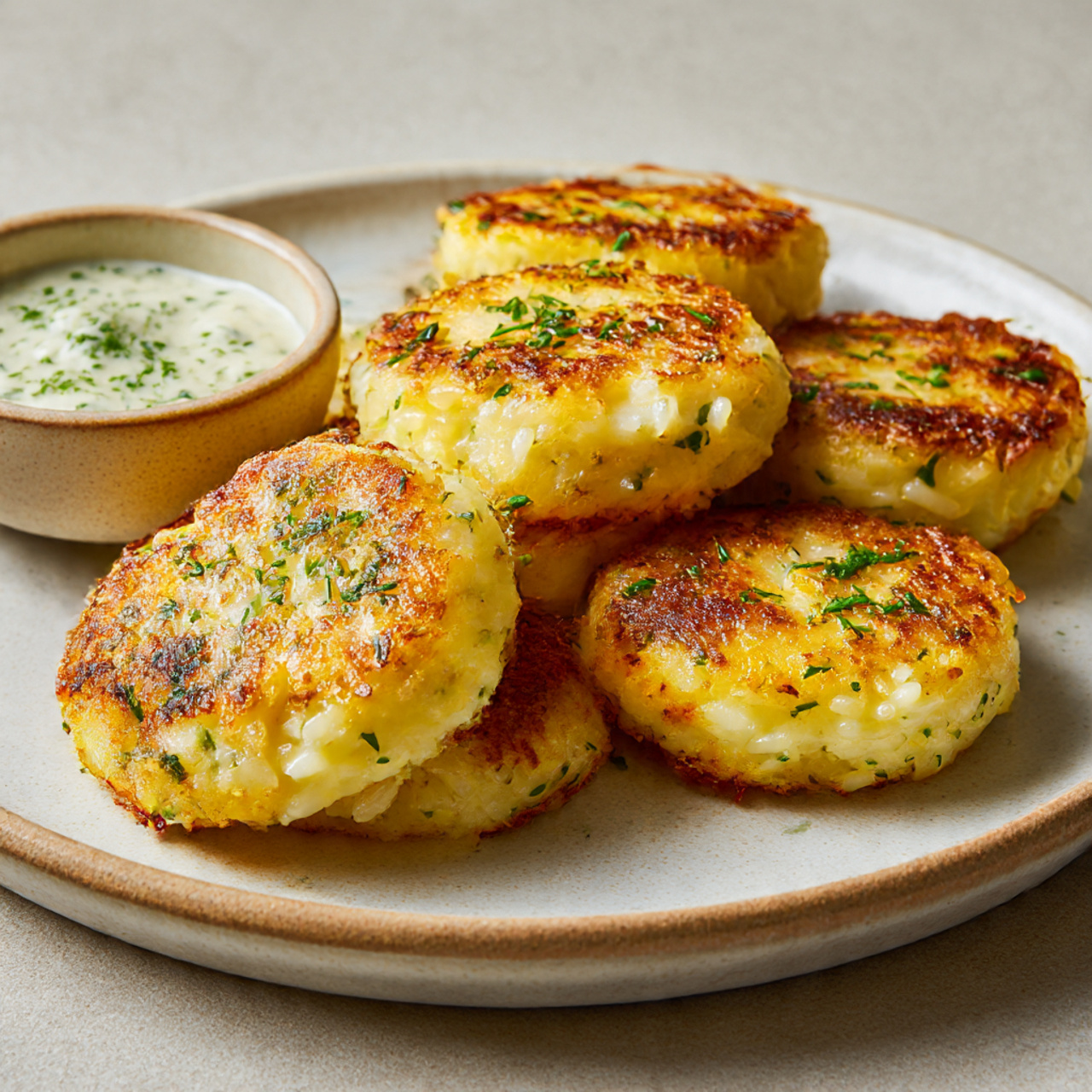 Rýžové medailonky se sýrem a bylinkami patří mezi pokrmy, které krásně využijí obyčejnou vařenou rýži a promění ji v lahodnou a harmonickou večeři nebo rychlý oběd. Na fotografii lze vidět dokonale zlatavé placičky s jemně propečenou kůrkou a vláčným, krémovým vnitřkem, doplněné o svěží bylinky a podávané s lehkým dipem. Tento recept je ideální pro všechny, kdo mají rádi jednoduché, cenově dostupné a přitom mimořádně chutné domácí jídlo.