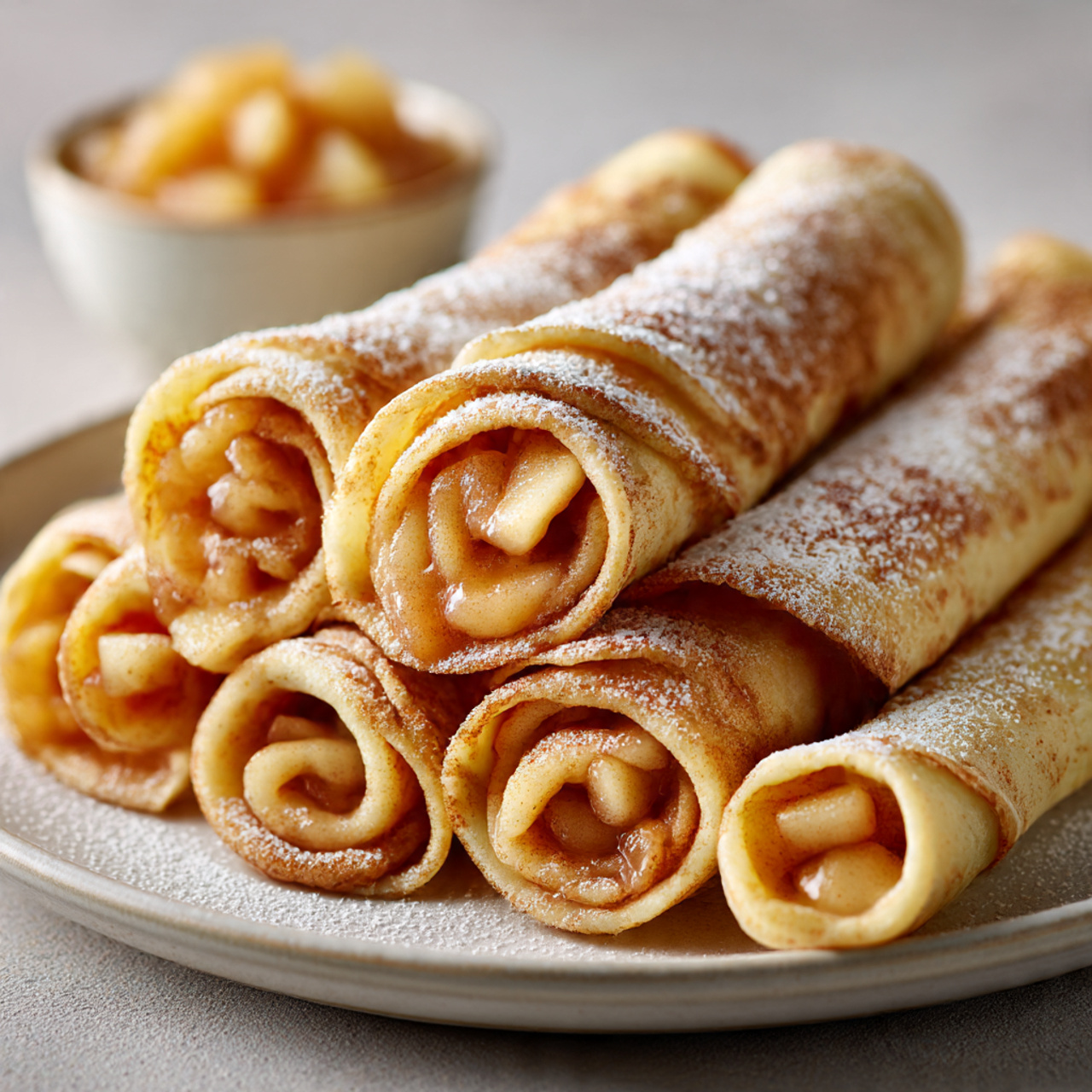 Skořicové palačinkové rolky s jablkovou náplní představují elegantní variantu klasických palačinek, která zaujme nejen svou chutí, ale také atraktivním vzhledem připomínajícím malé závinové rolky. Jemné, tenké palačinky jsou plněné měkkými, voňavými jablky restovanými na másle, skořici a trochou cukru. Celek působí lehce, šťavnatě a vizuálně velmi lákavě – přesně jako na přiložené fotografii. Jedná se o dezert, který se hodí ke snídani, ke kávě i jako sladká tečka po obědě.