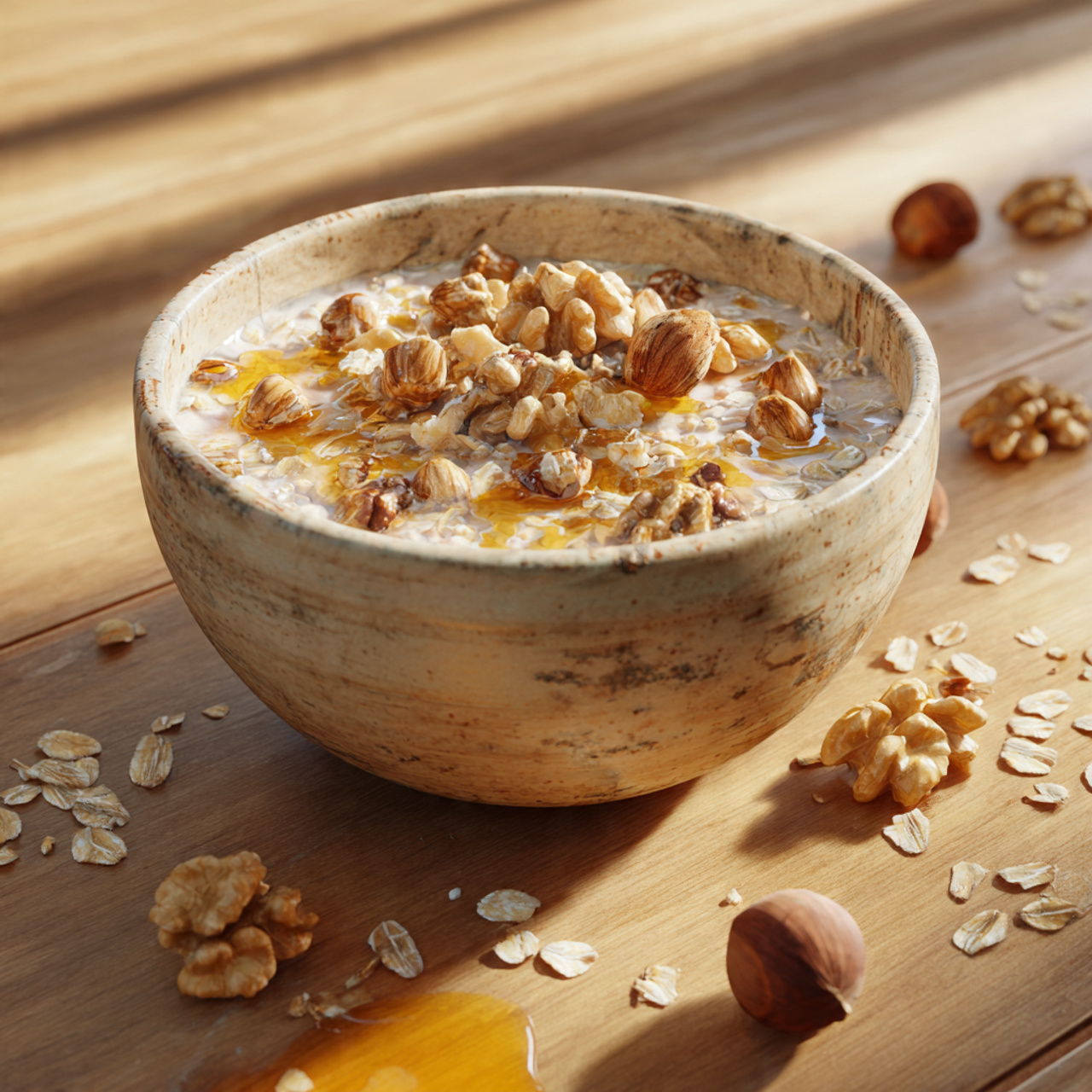 Tato miska nabízí perfektní kombinaci textur: měkké vločky, křupavé ořechy a med, který se postupně rozpouští. Jde o recept vhodný pro celoroční přípravu, který lze snadno upravit podle sezóny či vlastních preferencí. Můžete ho podávat studený i teplý, a navíc obsahuje kvalitní tuky, vlákninu i energii potřebnou na celé dopoledne.