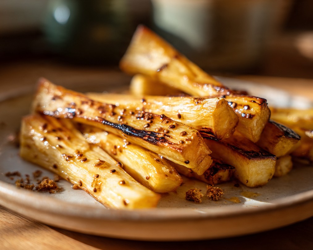 Pečené pastiňákové hranolky s medem a hořčicí