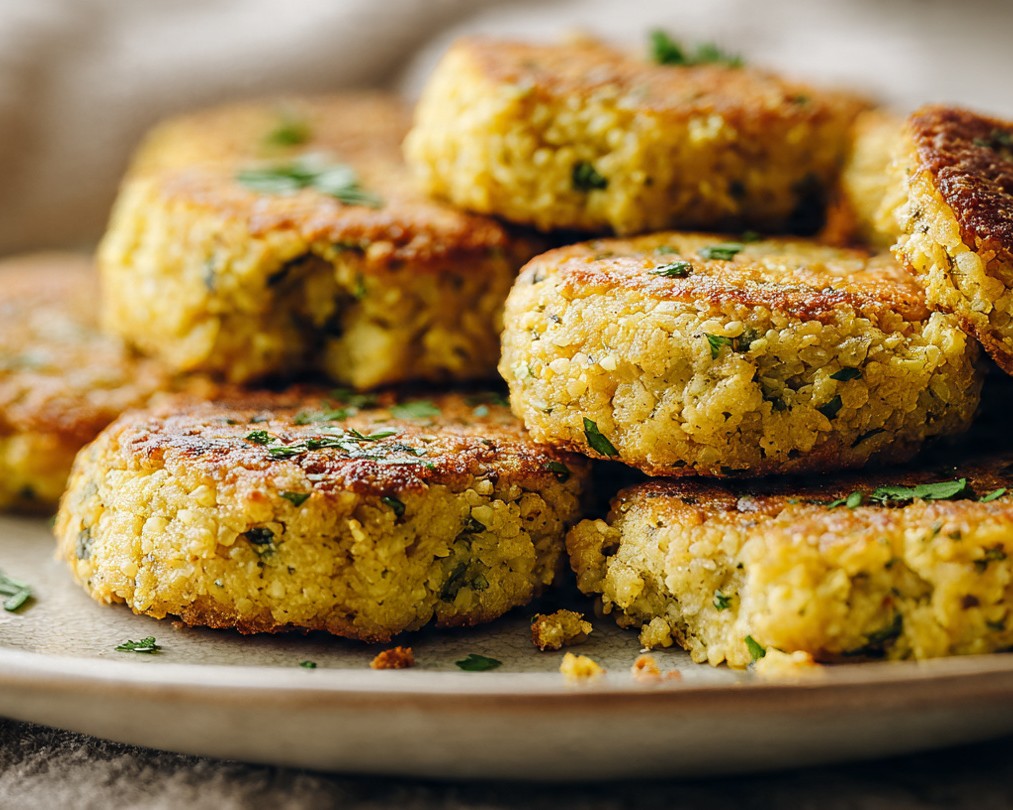 Pečené cizrnové placičky s bylinkami jsou chutným a výživným pokrmem, který spojuje jemnou strukturu rozmixované cizrny s výraznou vůní čerstvých bylinek. Podle fotografie jsou placičky krásně zlatavé, na povrchu lehce křupavé a uvnitř měkké a šťavnaté. Díky pečení v troubě jsou lehčí než klasické smažené karbanátky, přesto si zachovávají plnou chuť.