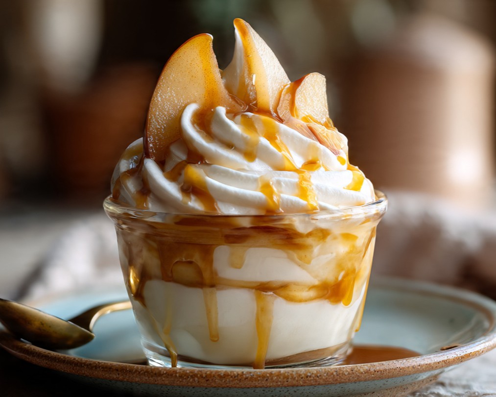 Vanilkový pohár s karamelizovanými hruškami je elegantní a přitom velmi jednoduchý dezert, který vyniká jemností, krémovou strukturou a výraznou chutí ovoce. Podle fotografie je dezert vrstvený do skleněného poháru – spodní část tvoří hladký vanilkový krém, který je doplněn horkými karamelizovanými hruškami a zakončen bohatou vrstvou šlehačky a karamelové omáčky.