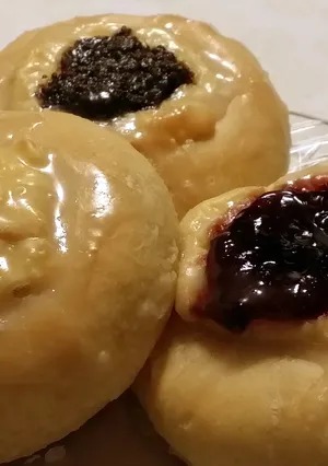 9. Do důlku vložte makovou nebo povidlovou náplň, podobně jako je vidět na fotografii.
