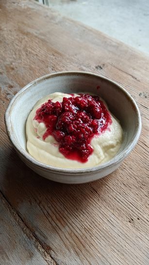 Krupicový krém s malinovým rozvarem