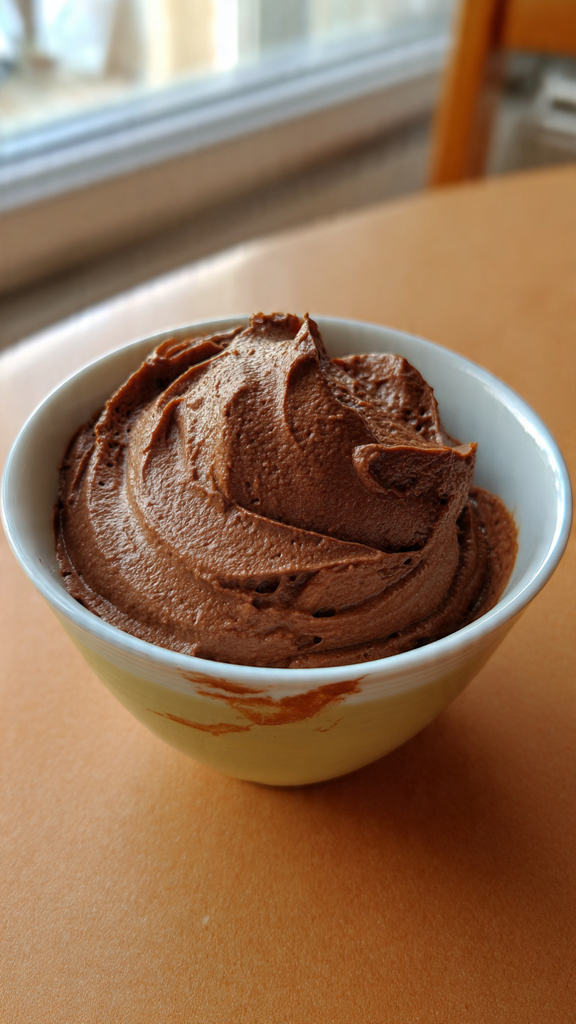 Čokoládový krém s pomerančovou vůní je elegantní a zároveň velmi jednoduchý dezert, který zaujme svou hladkou, sametovou strukturou a hlubokou čokoládovou chutí. Na fotografii je patrná hutná, krémová konzistence s jemně tvarovanými vlnami na povrchu, které vznikají při roztírání nebo šlehání. Krém působí bohatě, kompaktně a přesto nadýchaně, bez viditelných bublin nebo zrnitosti.