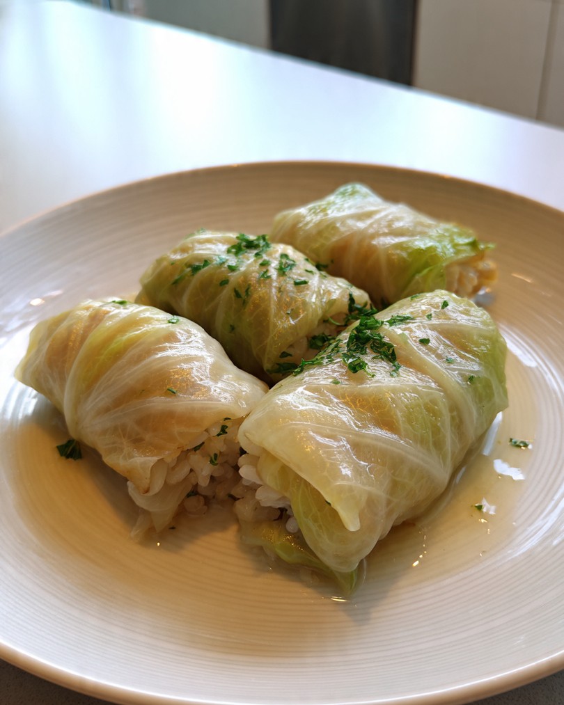 Dušené zelné závitky plněné rýží a bylinkami jsou ukázkou toho, že i jednoduché suroviny mohou vytvořit velmi jemný, harmonický a elegantní pokrm. Díky lehké náplni a šetrné úpravě jsou vhodné pro každodenní vaření i slavnostnější příležitosti. Tento recept je ideální volbou pro webovou prezentaci, protože spojuje tradiční kuchyni, zdravý přístup a vizuálně čistý výsledek.