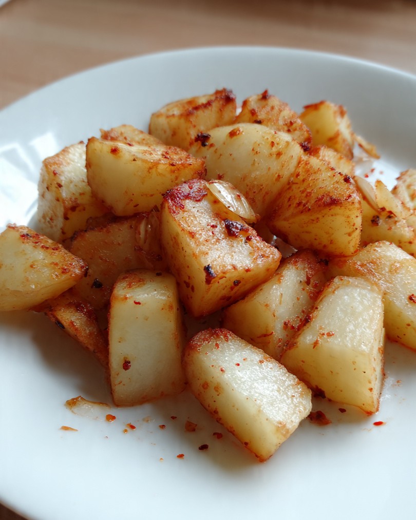 Pečené bramborové kostky s paprikou a česnekem jsou jednoduchou, ale mimořádně chutnou přílohou, která se hodí k široké škále hlavních jídel. Díky pečení v troubě získají brambory zlatavou barvu, křupavý povrch a jemný, měkký vnitřek. Kombinace sladké mleté papriky, česneku a kvalitního oleje vytváří výraznou, přesto harmonickou chuť.