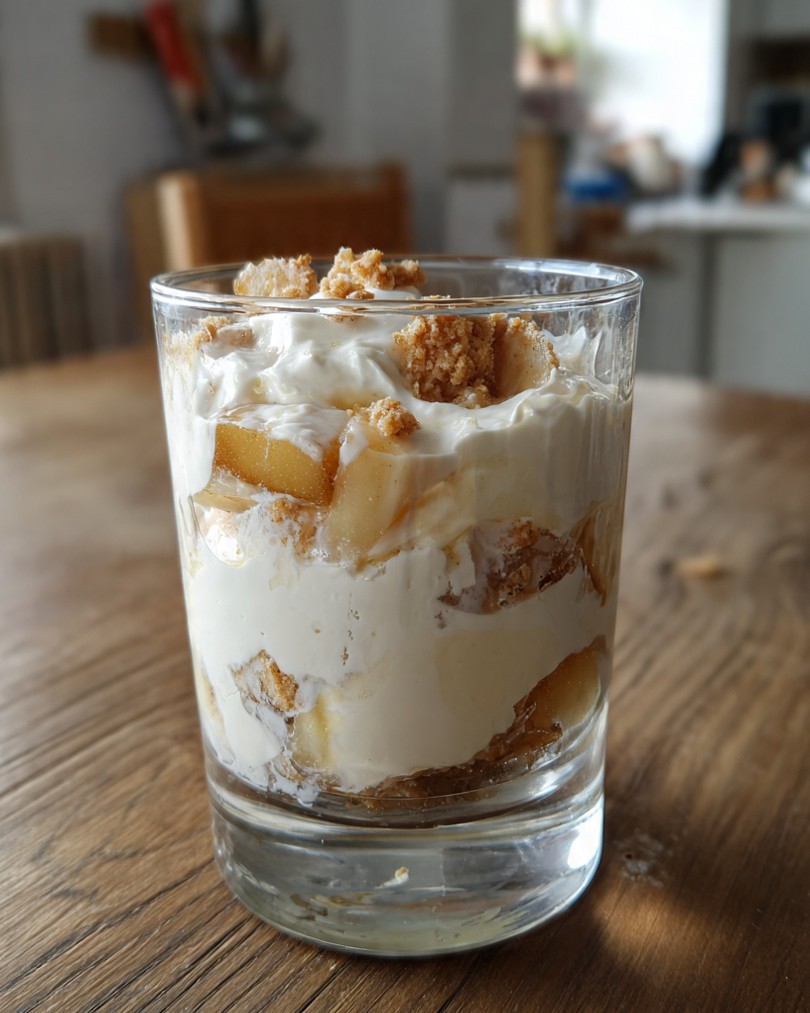 Jablečný dezert do skleničky bez pečení je lehký, jemný a zároveň chuťově plný dezert, který staví na harmonii krémové vrstvy, měkkých jablek a drobivého korpusu. Působí velmi domácky, přesto elegantně, a díky servírování ve skleničce má i přehlednou strukturu a atraktivní vzhled. Je ideální volbou pro chvíle, kdy chcete připravit něco sladkého bez zapínání trouby, ale zároveň s pocitem poctivého domácího dezertu.