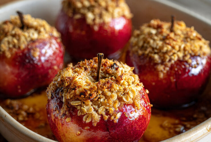 Pečená jablka plněná ovesnou drobenkou Hodnocení receptu: 4,9/5 Popis receptu Pečená jablka plněná ovesnou drobenkou patří mezi klasické dezerty, které propojují jednoduchost přípravy s výraznou chutí a vůní domova. Na fotografii jsou zachycena pevná červená jablka, jejichž slupka se během ...